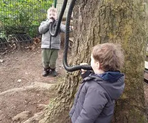 Forest school is holistic learning through play and exploration, children learn about the environment, how to handle risks and use their initiative to solve problems and to co-operate with others.